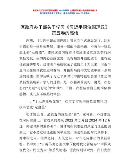/ 区政府办干部关于学习《习近平谈治国理政》第五卷的感悟