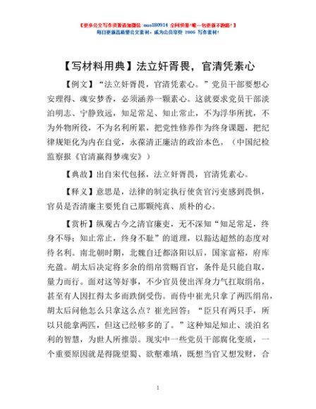 【写材料用典】法立奸胥畏,官清凭素心