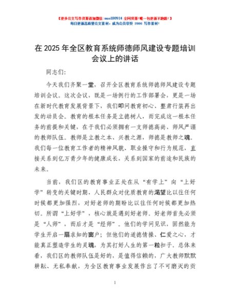 / 在2025年全区教育系统师德师风建设专题培训会议上的讲话
