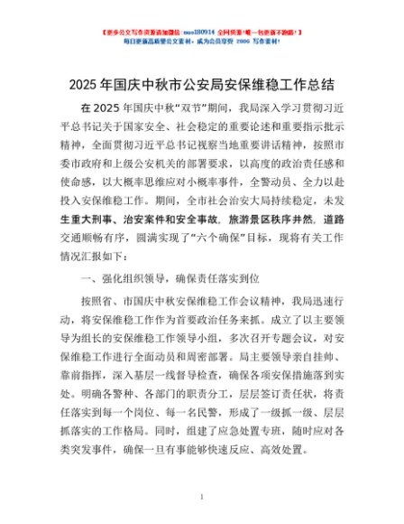 / 2025年国庆中秋市公安局安保维稳工作总结