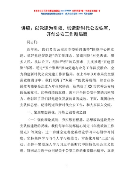 讲稿:以党建为引领,锻造新时代公安铁军,开创公安工作新局面