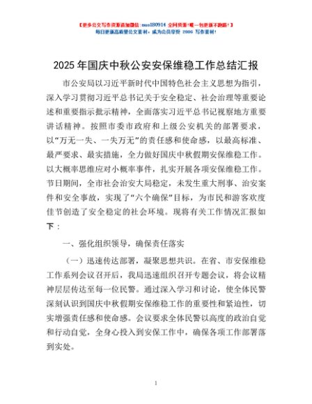 / 2025年国庆中秋公安安保维稳工作总结汇报