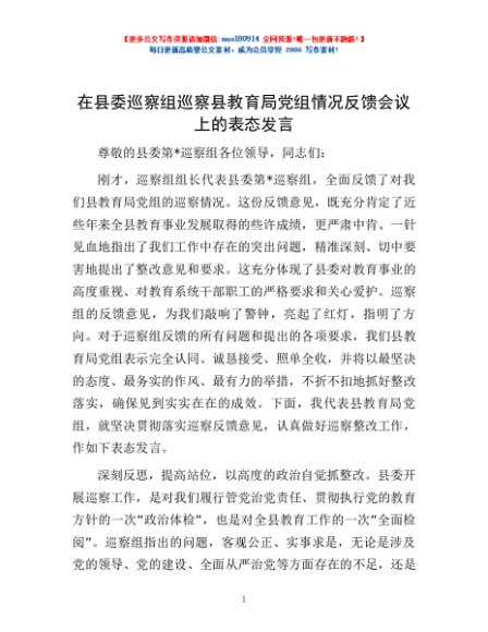 / 在县委巡察组巡察县教育局党组情况反馈会议上的表态发言