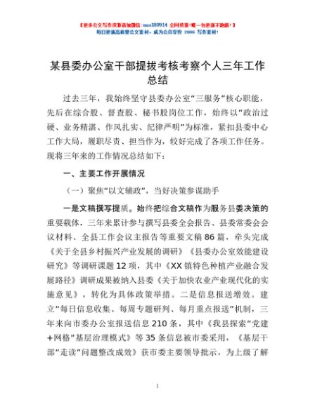 / 某县委办公室干部提拔考核考察个人三年工作总结