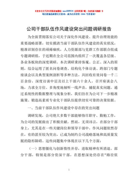 / 公司干部队伍作风建设突出问题调研报告