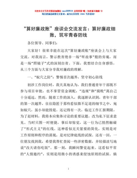 / “算好廉政账”座谈会交流发言:算好廉政细账,筑牢青春防线