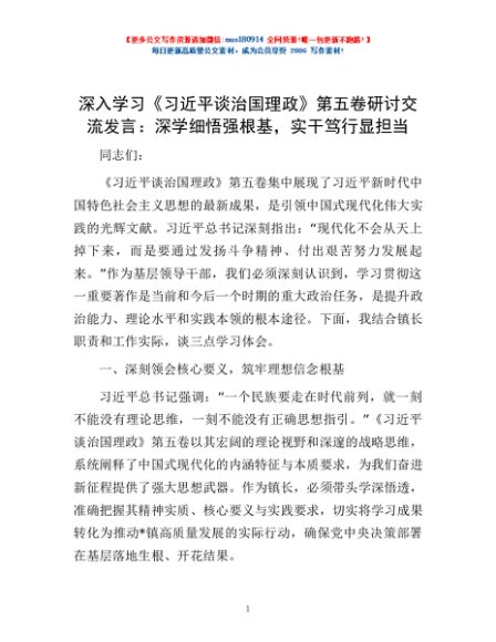 / 深入学习《习近平谈治国理政》第五卷研讨交流发言:深学细悟强根基,实干笃行显担当