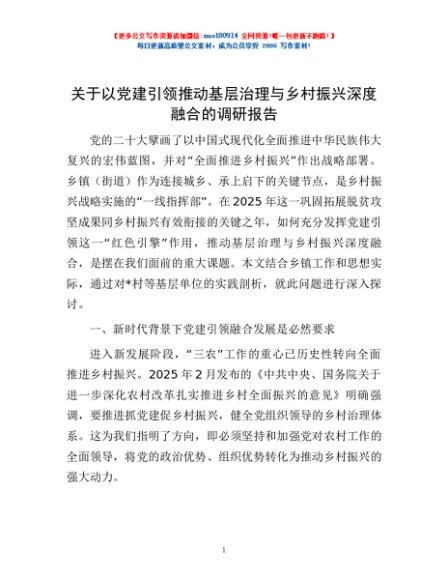 / 关于以党建引领推动基层治理与乡村振兴深度融合的调研报告