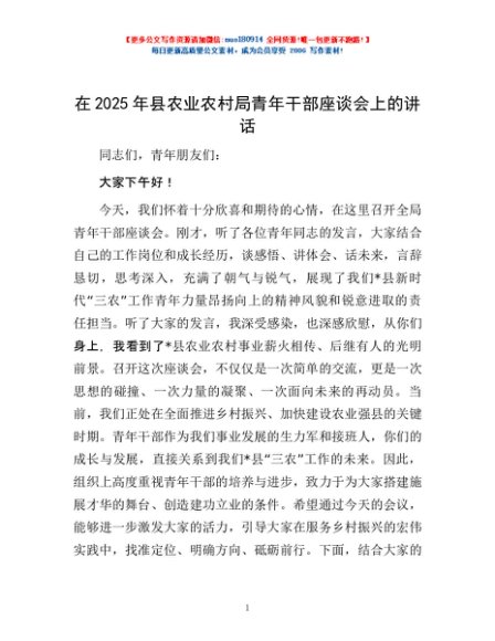 / 在2025年县农业农村局青年干部座谈会上的讲话