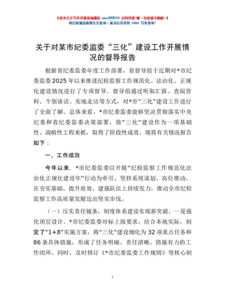 / 关于对某市纪委监委“三化”建设工作开展情况的督导报告