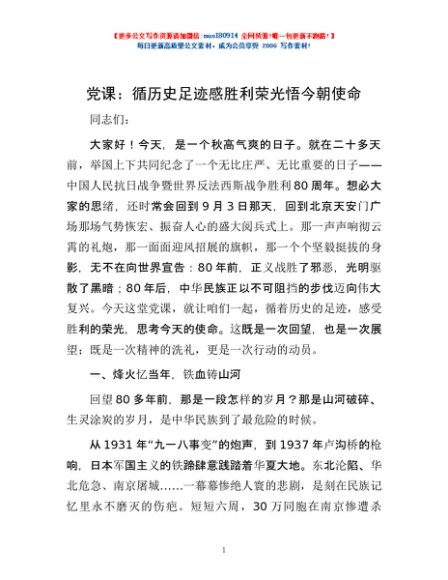/ 党课:循历史足迹 感胜利荣光 悟今朝使命
