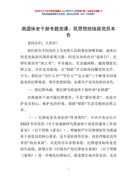 / 离退休老干部专题党课:筑思想防线 葆党员本色