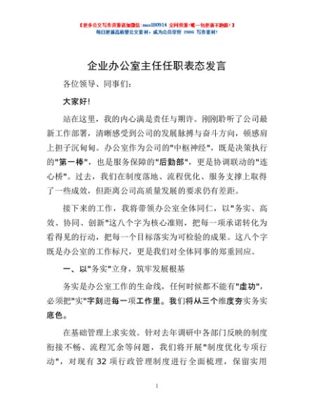 / 企业办公室主任任职表态发言