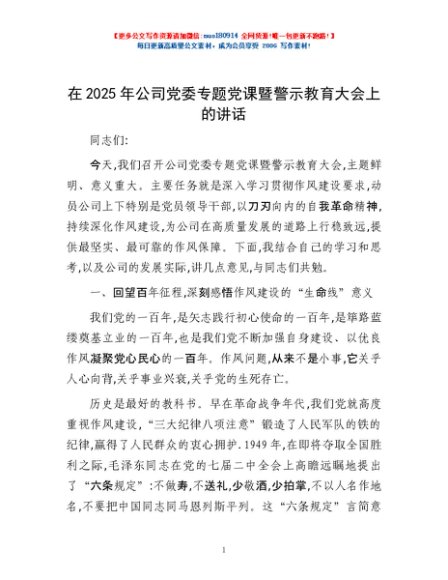 / 在2025年公司党委专题党课暨警示教育大会上的讲话