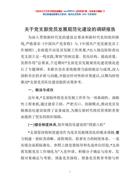 / 关于党支部党员发展规范化建设的调研报告