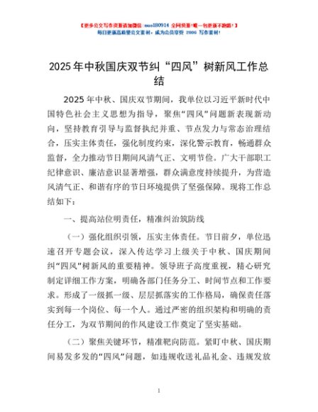 / 2025年中秋国庆双节纠“四风”树新风工作总结