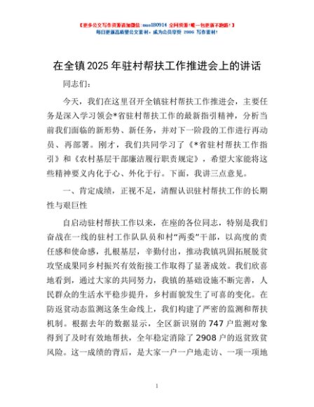 / 在全镇2025年驻村帮扶工作推进会上的讲话