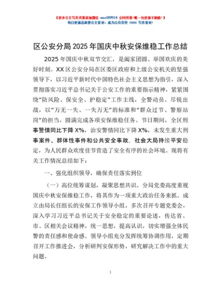 / 区公安分局2025年国庆中秋安保维稳工作总结