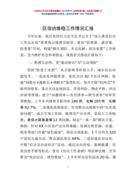 / 区信访维稳工作情况汇报
