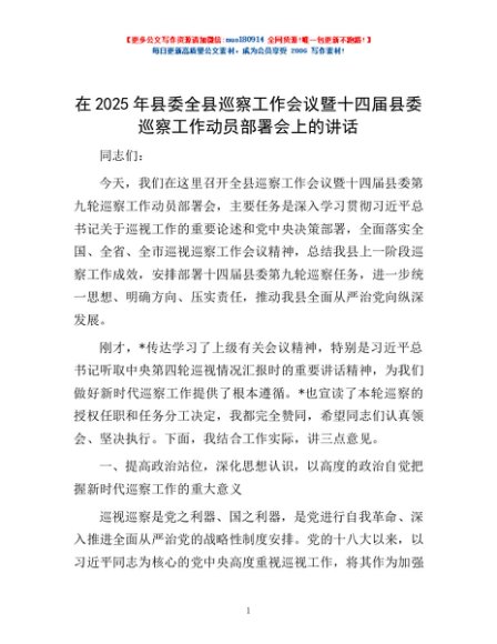 / 在2025年县委全县巡察工作会议暨十四届县委巡察工作动员部署会上的讲话