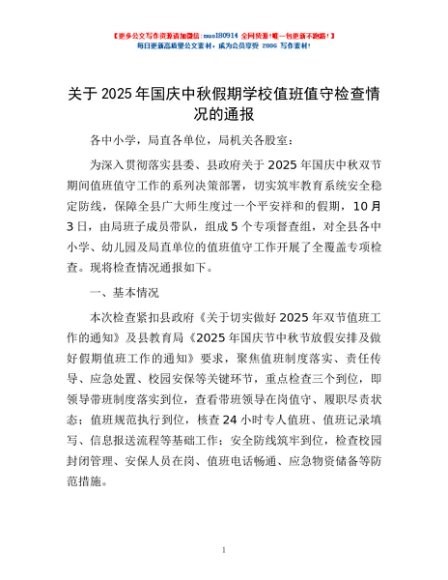 / 关于2025年国庆中秋假期学校值班值守检查情况的通报