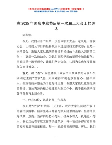 / 在2025年国庆中秋节后第一次职工大会上的讲话