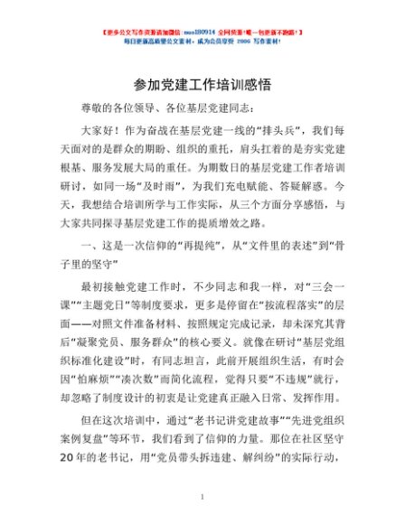 / 参加党建工作培训感悟