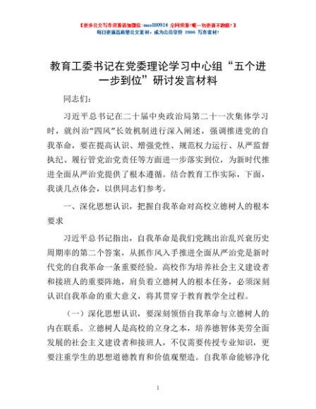 / 教育工委书记在党委理论学习中心组“五个进一步到位”研讨发言材料