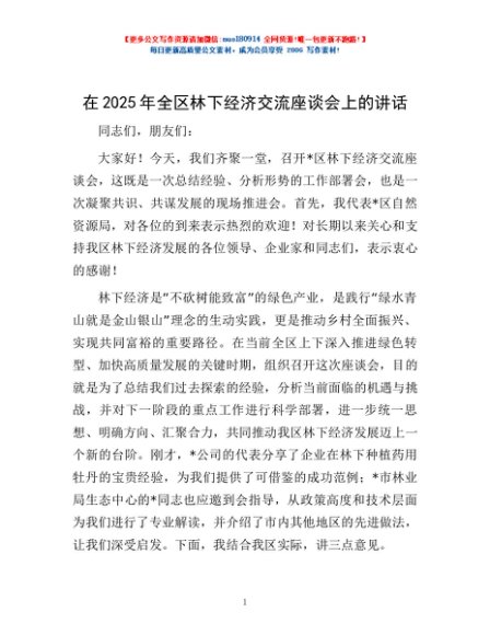 / 在2025年全区林下经济交流座谈会上的讲话