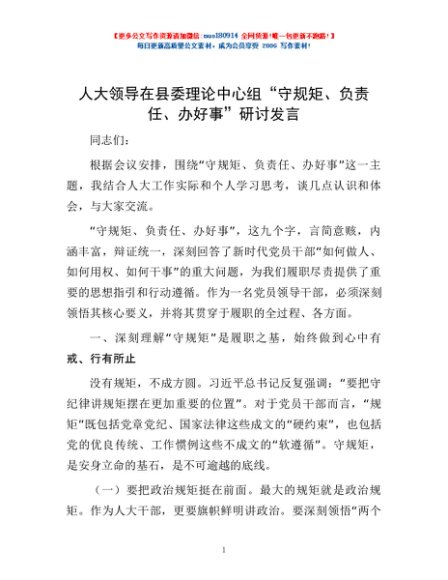 / 人大领导在县委理论中心组“守规矩、负责任、办好事”研讨发言