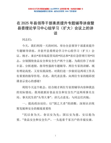 / 在2025年县领导干部素质提升专题辅导讲座暨县委理论学习中心组学习(扩大)会议上的讲话