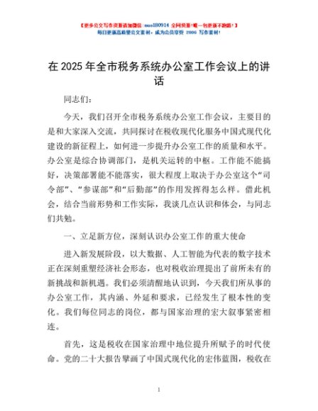 / 在2025年全市税务系统办公室工作会议上的讲话