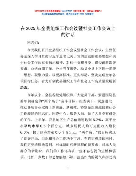 / 在2025年全县组织工作会议暨社会工作会议上的讲话