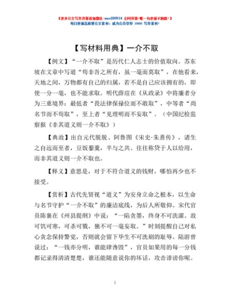 / 【写材料用典】一介不取