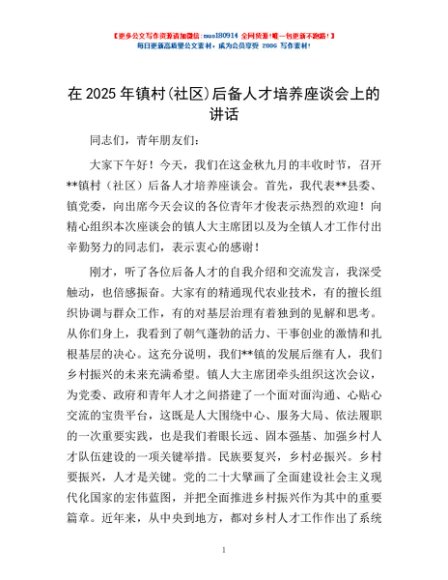/ 在2025年镇村(社区)后备人才培养座谈会上的讲话