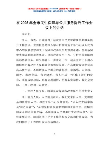/ 在2025年全市民生保障与公共服务提升工作会议上的讲话