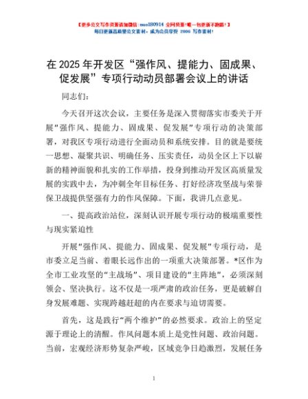 / 在2025年开发区“强作风、提能力、固成果、促发展”专项行动动员部署会议上的讲话
