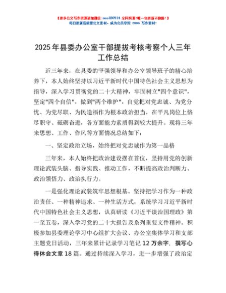 / 2025年县委办公室干部提拔考核考察个人三年工作总结