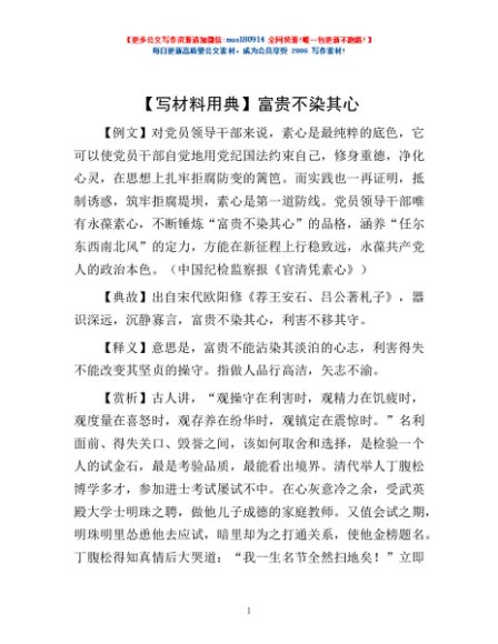 / 【写材料用典】富贵不染其心