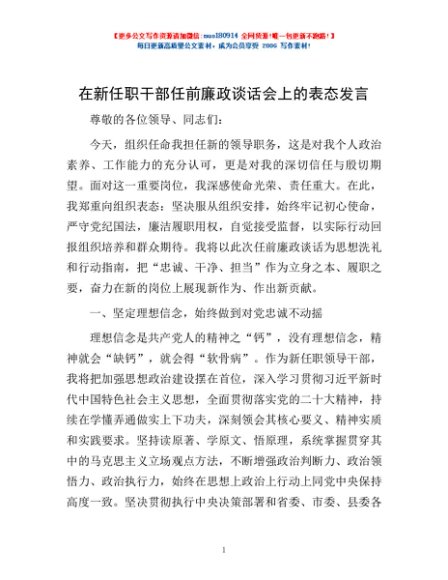 / 在新任职干部任前廉政谈话会上的表态发言