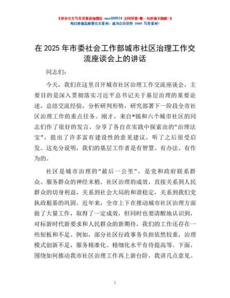 / 在2025年市委社会工作部城市社区治理工作交流座谈会上的讲话