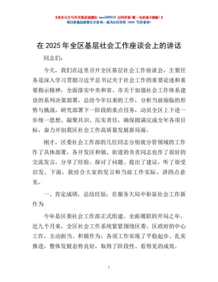 / 在2025年全区基层社会工作座谈会上的讲话