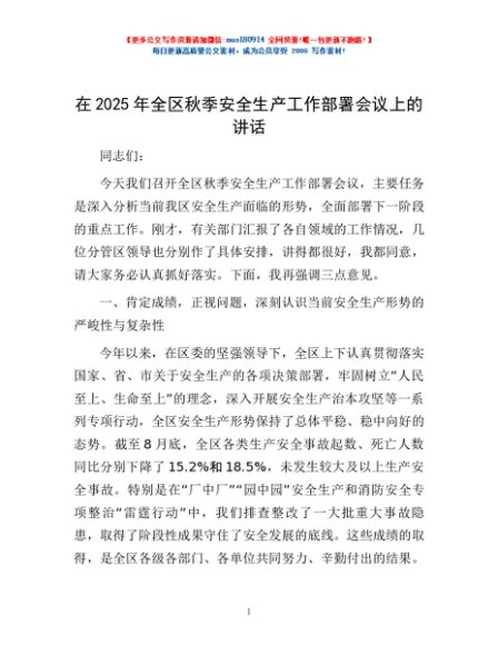 / 在2025年全区秋季安全生产工作部署会议上的讲话