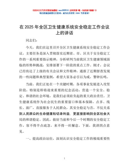 / 在2025年全区卫生健康系统安全稳定工作会议上的讲话