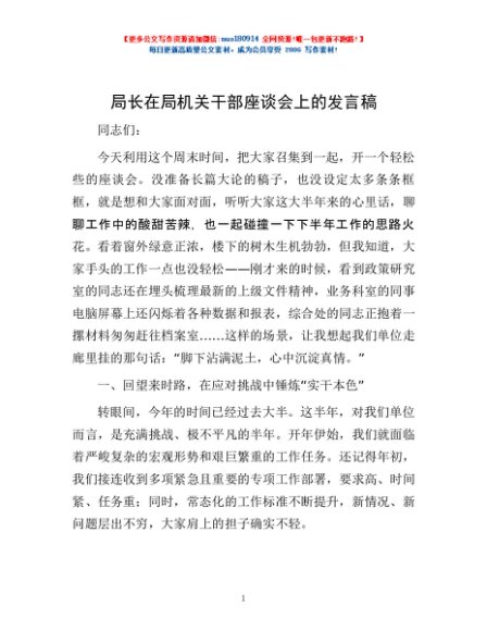 / 局长在局机关干部座谈会上的发言稿