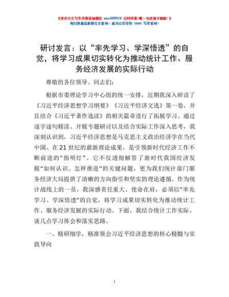 / 研讨发言:以“率先学习、学深悟透”的自觉,将学习成果切实转化为推动统计工作、服务经济发展的实际行动