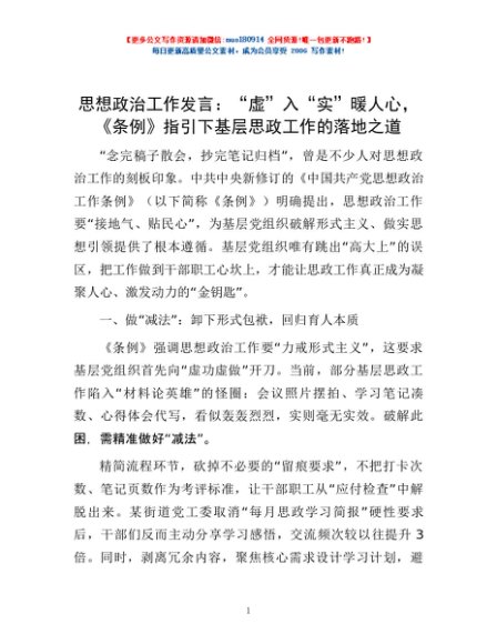 / 思想政治工作发言:“虚”入“实”暖人心,《条例》指引下基层思政工作的落地之道