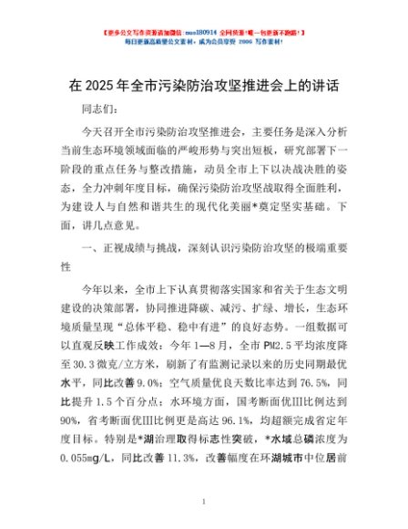 / 在2025年全市污染防治攻坚推进会上的讲话