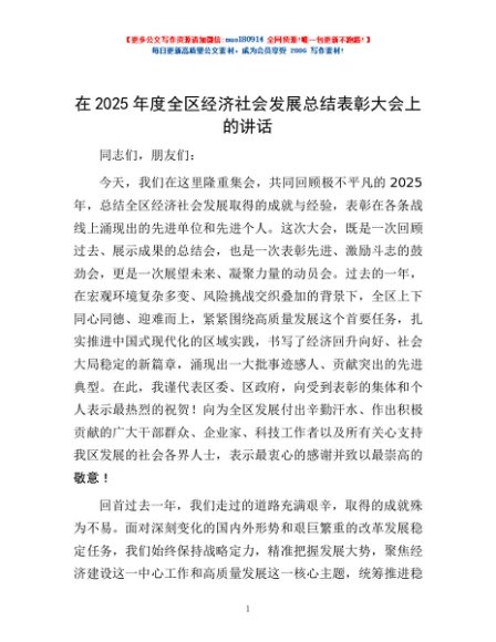 / 在2025年度全区经济社会发展总结表彰大会上的讲话