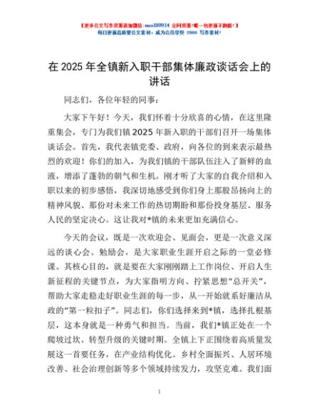 / 在2025年全镇新入职干部集体廉政谈话会上的讲话